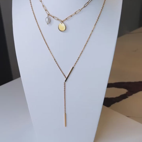 This stylish paper clip and pearl necklace combines simplicity with sophistication. Crafted with quality materials, it's the perfect accessory to bring any outfit to the next level. With its lightweight design, this necklace is comfortable and easy to wear.